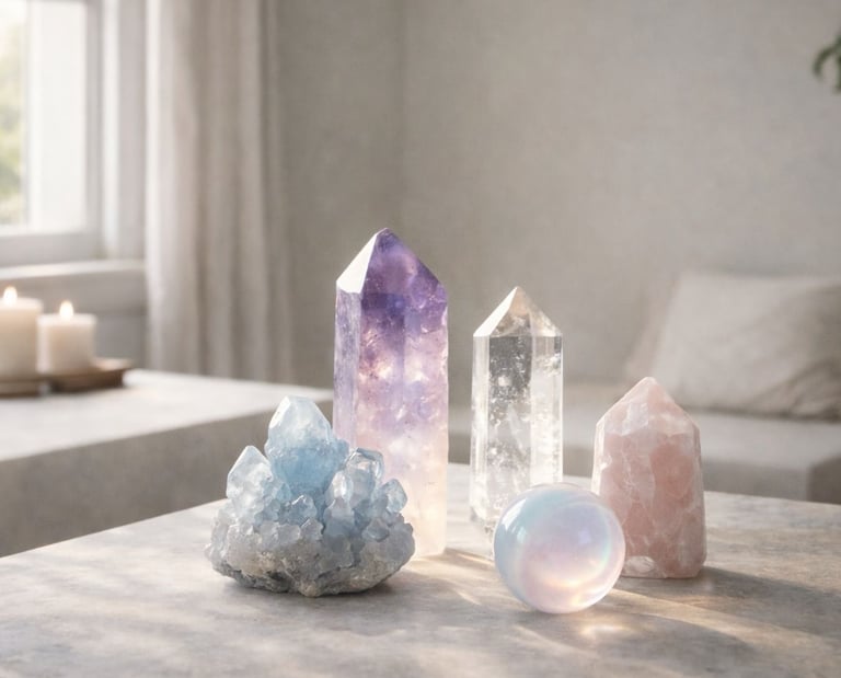 Crystals are an integral part of the work. They function as points of coherence — quiet antennas that support clarity and transmission. You will be invited to have a crystal present with you during the session.